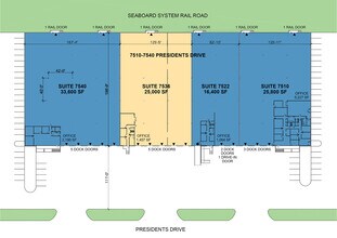 22' clear height; one rail door; 111' truck court' 0.64/1,000 SF parking ratio; front load