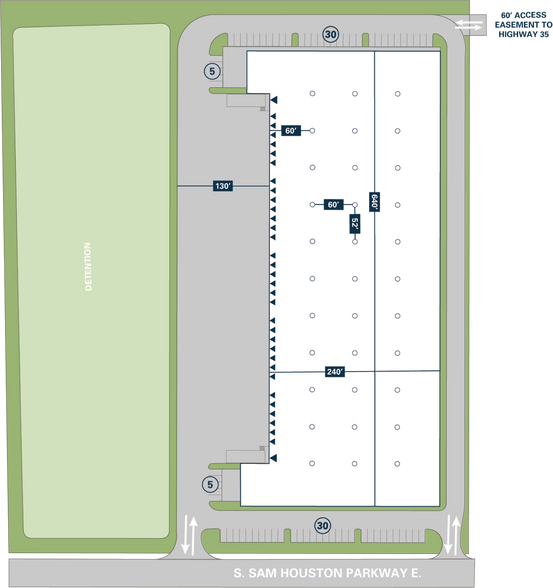 BTS Office 32’ Clear Height 640’ x 240’ Building Dimensions 60’ x 52’ Column Spacing 60’ Speed Bay 130’ Truck Court 32 Dock-High Doors 2 Drive-In Doors 70 Car Parking Spaces ESFR Sprinkler