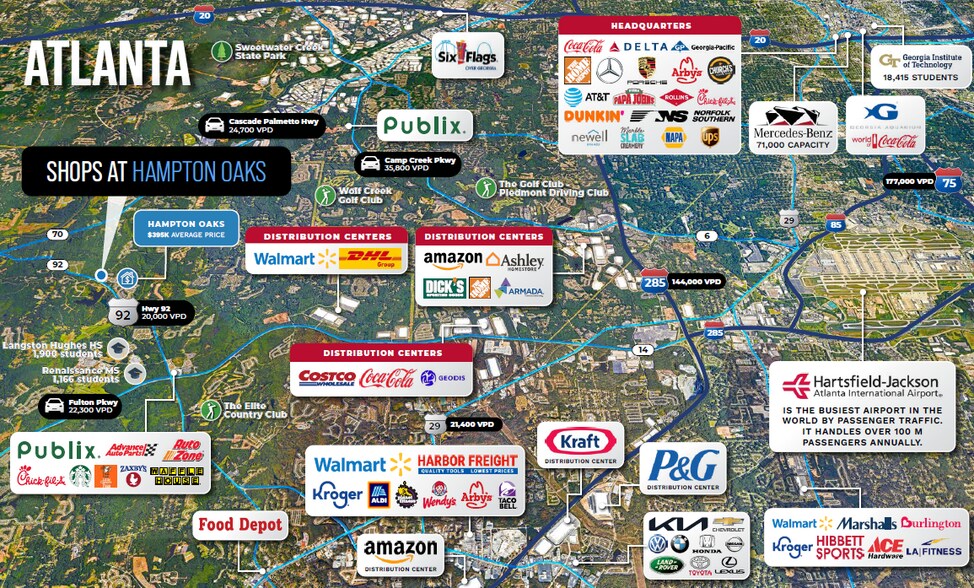 • Direct frontage on Hwy 92 (20,000+ VPD) in the epicenter of South Fulton’s residential explosion – immediate adjacency to Hampton Oaks master-planned