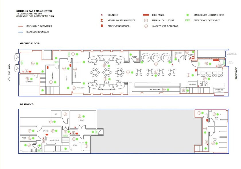 The ground floor is well presented and partially fitted to include a large openplan bar / restaurant area, kitchen and disabled W/C. The frontage onto Deansgate is fully retractable providing an “indoor / outdoor style seating terrace”. A pavement license for additional outdoor seating on Deansgate can be sought. Male and female W/C’s are at basement level along with back of house kitchen, storage, staff and office areas.