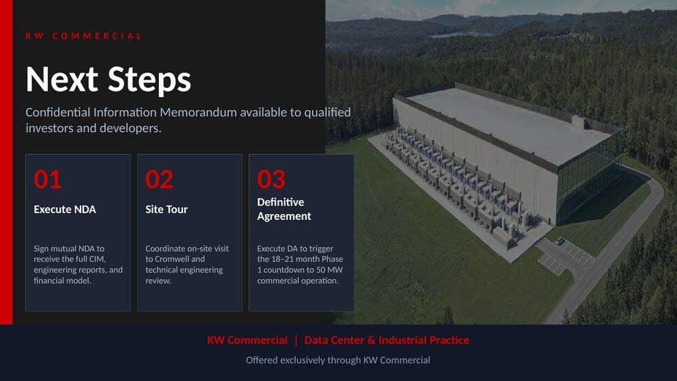 The development is positioned as an anchor energy user, with long-term gas transportation agreements underway. High-efficiency fuel cells, heat recovery systems, and the Northeast climate contribute to lower operating costs compared to southeastern U.S. markets. The site also offers strong fiber connectivity between New York City and Boston, supporting hyperscale and enterprise tenants. Projected COD is Q2 2028, with strong municipal support already secured.