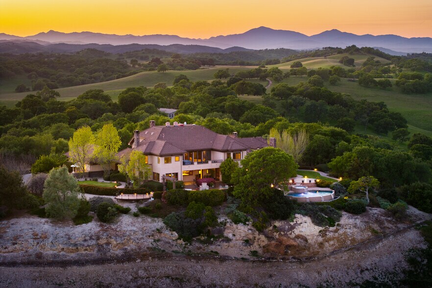 Niché au cœur du comté de Monterey, le Rancho San Bartolome offre un mélange inégalé de luxe et d'élégance rustique. Perché au sommet d'une colline à couper le souffle avec des vues panoramiques sur des collines ondulantes, ce ranch de 3 044± acres dédié à l'élevage de bétail combine le meilleur des deux mondes : un luxe intérieur extrême et une extravagance extérieure. Situé au nord-est de Paso Robles, au cœur de la région viticole de la côte centrale, ce domaine emblématique offre un cadre serein pour ceux qui recherchent un style de vie raffiné à la campagne. La résidence principale, un manoir de style Tudor anglais de 8 132± pieds carrés, occupe tout le deuxième étage et comprend une suite principale qui profite pleinement des vues panoramiques. Réveillez-vous face à des couchers de soleil spectaculaires depuis votre lit, avec une vue imprenable sur la piscine à débordement, ou détendez-vous dans le bain à remous privé sur le balcon du patio de la suite principale. La suite principale dispose de deux vastes garde-robes walk-in, d’un bar, d’une buanderie et d’une salle d’entraînement. Avec des placards allant du sol au plafond, des balcons Juliette et chaque détail pensé pour le confort, cette maison incarne le luxe à son apogée. Les hébergements supplémentaires pour les invités comprennent deux charmants cottages, deux maisons pour le personnel du ranch et une "maison de cow-boy" pouvant accueillir quatre personnes. Rancho San Bartolome est un ranch de bétail en activité, équipé d’un tout nouveau corral, d’une sellerie, de silos à grains et d’une zone de transformation de viande contrôlée par la température. Avec une faune abondante, y compris des élans de Tule qui parcourent les terres, le domaine est également un paradis pour les chasseurs. La propriété est dotée d’une station de pompiers avec un camion de pompiers opérationnel, d’une salle de réunion à thème lodge de safari africain, de granges, de divers bâtiments agricoles et de plusieurs gazebos pour profiter de l’extérieur. Le domaine est conçu pour la détente et le divertissement, avec deux piscines, une chapelle, un potager et de nombreux arbres fruitiers. La salle de réunion San Bartolome, à thème safari, avec des portes de grange mécaniques, un bar complet et une salle de bain, offre un cadre unique pour des rassemblements décontractés, l’observation de la faune ou le tir au pigeon d’argile. Une route privée pavée mène au complexe, où des chemins en pavés et un garage pour quatre voitures complètent l’emplacement majestueux au sommet de la colline. Cette propriété clé en main a bénéficié d’améliorations significatives au cours de la dernière année, en faisant une retraite idéale pour ceux qui recherchent un ranch de gentleman, avec des installations opérationnelles pour le bétail, des terrains de chasse et des espaces de vie luxueux. Situé à seulement 30 minutes de Paso Robles et à 20 minutes du lac Nacimiento, ce domaine offre un accès facile à la fois à la beauté naturelle et aux commodités de classe mondiale.