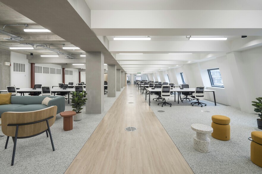 L'édifice Johnson offre un espace de travail créatif et flexible à quelques minutes de la station Farringdon et de la nouvelle ligne Elizabeth. Centré autour d'un atrium spacieux sur toute la hauteur offrant à la fois lumière et volume, le bâtiment principal abrite un espace de réception contemporain avec des espaces de travail et un café en plein air. Avec des intérieurs contemporains entièrement rénovés et un hall de réception récemment rénové près de Hatton Garden avec de grands murs habitables, un café sur place et une équipe de gestion de l'immeuble, le bâtiment sera un lieu impressionnant pour les entreprises progressistes et avant-gardistes à la recherche d'un espace de travail vraiment inspirant au cœur de Farringdon EC1 L'espace disponible comprend un impressionnant triplex de plus de 50 000 pi² aux étages 4, 5 et 6 avec des escaliers communicants, des découpages à triple hauteur, deux terrasses privées sur le toit et des finitions intérieures de la plus haute qualité. À l'arrière du campus, il y a une cour commune entièrement rénovée et une terrasse commune sur le toit au 7e étage de l'édifice Courtyard.