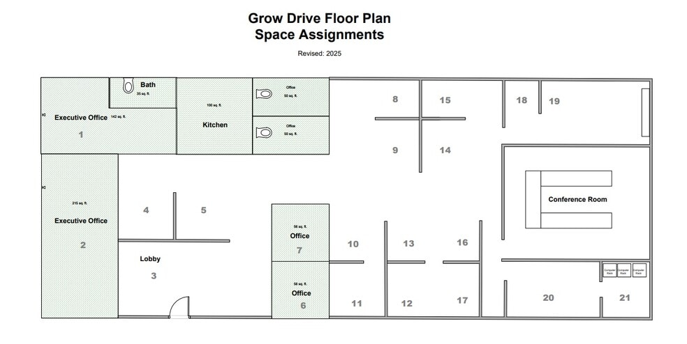 - • 6 private offices, 12 cubicles, large conference room, server, breakroom, 2 bath, 30 parking spaces, office furniture, appliances, security cameras