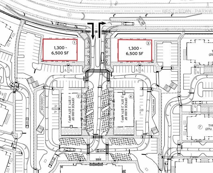- Frontage along West Town Parkway (7,200 AADT), a primary connector for neighborhood commuters.