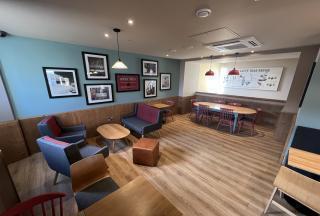 The ground floor comprises an open-plan seating/sales area, a service area, and a WC. The first floor provides customer seating, a WC and storage on the half landing. The property was previously occupied by Costa Coffee and is presented in their standard corporate fit-out. Lighting is a mix of spotlights and pendant lamps. Electric radiators provide heating, and there is air conditioning present. The property has two large customer display windows and a fascia board for signage.