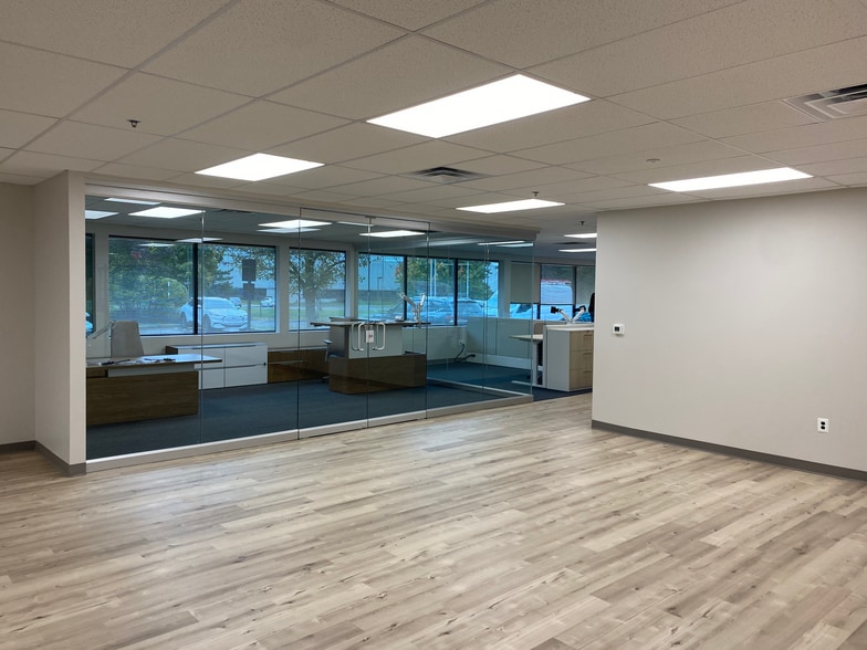 4 private offices, 3 conference rooms, reception area, 2 bathrooms (1 mens, 1 womens), kitchenette, open area, (2) 8x10 dock door spaces infilled with windows, 9’ drop ceilings, 18’ ceilings above, 16’ to beam.