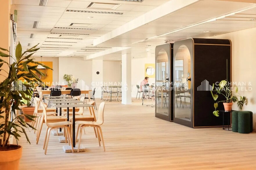 Cet espace de coworking indépendant propose près de 8?000?m² répartis entre un rez-de-chaussée entièrement dédié aux services et deux étages de bureaux accueillant jusqu’à 1?083 postes. Les plateaux du 5? et du 6? étage bénéficient d’une luminosité généreuse et d’une grande modularité permettant d’adapter facilement les configurations aux besoins des équipes. Les utilisateurs profitent d’un ensemble de services premium : accueil Morning, salle de sport, douches, salle de jeux, salle à manger, comptoir, espace évènementiel, parking et local vélos. L’extérieur aménagé complète l’expérience en offrant un cadre idéal pour alterner travail et moments de détente. L’ensemble constitue un environnement de travail moderne, vivant et totalement opérationnel.