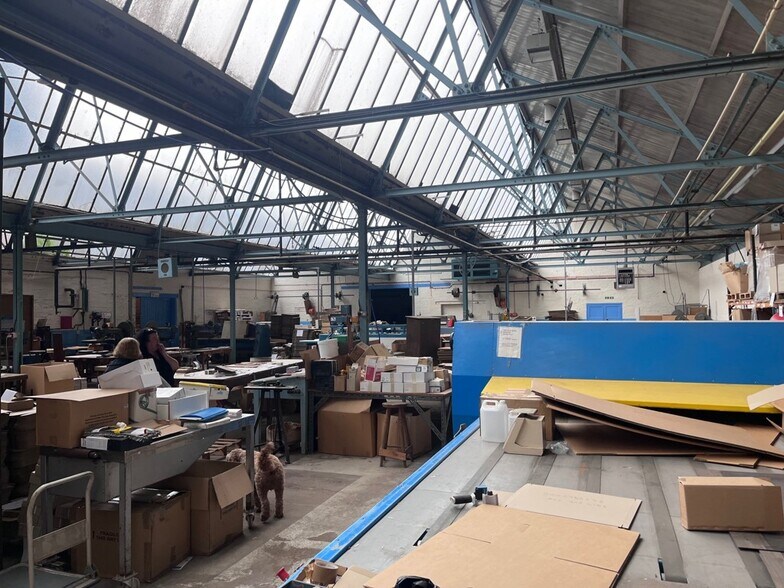 À l'interne, il y a du contenu des bureaux à l'avant de l'immeuble et des locaux à bureaux et des locaux d'usine. L'usine est divisée en trois zones principales, divisées par des murs de briques.