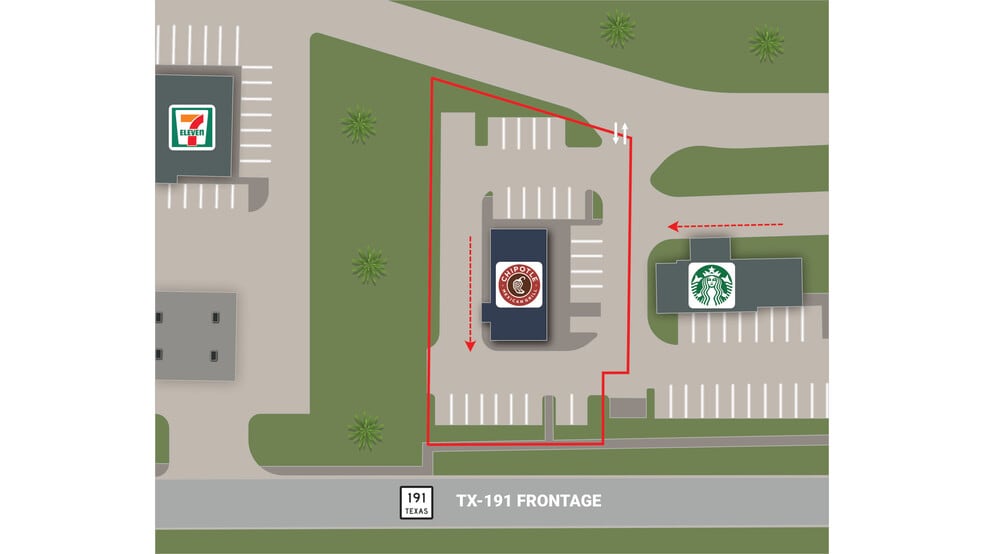 - Prime Corner with Excellent Visibility & Access Along TX-191 (37,401+ VPD), just North of I-20 Business/2nd Street (32,522+ VPD)