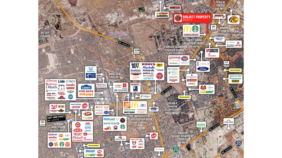 - 2 Mi. from University of Texas Permian Basin (~6k+ Students), 4 Mi. from Midland International Airport (700k+ Passengers/Yr), & More