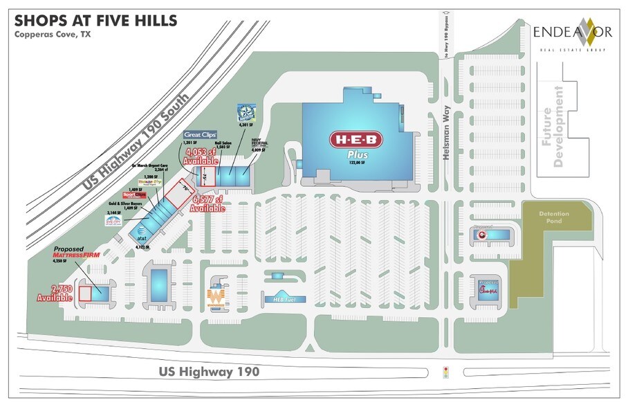 Five Hills Shopping Center 804 E Highway 190 3 144 pi² d'espace disponible • Commerce de détail • Copperas Cove, TX 76522