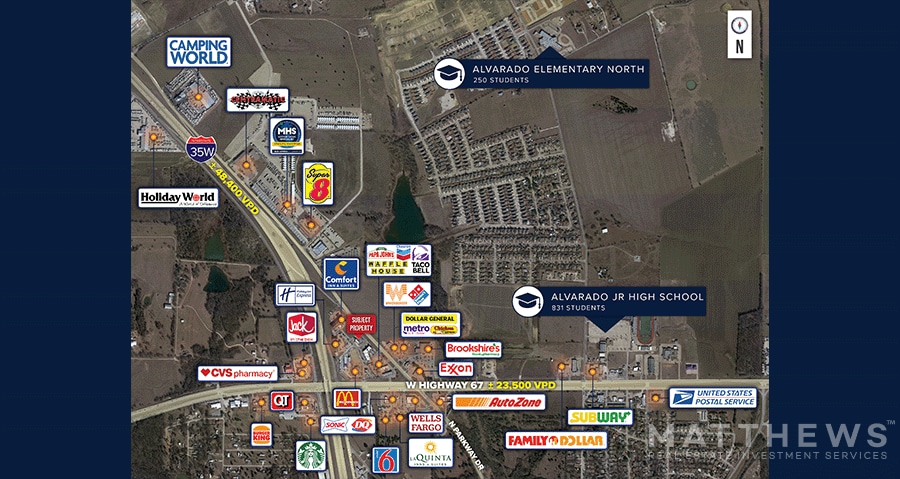- Excellente comptabilisation du trafic — L'autoroute I-35W, qui se déplace directement à côté de la propriété, enregistre un nombre de trafic de plus de 48 400 VPM