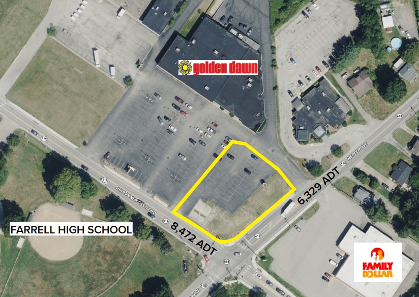 ±0.75-acre pad site available for sale or lease Offered at $250,000 Prominent position at a signalized intersection for excellent visibility and access Curb Cuts On Sharon New Castle and Mercer Ave Directly across from Farrell High School,