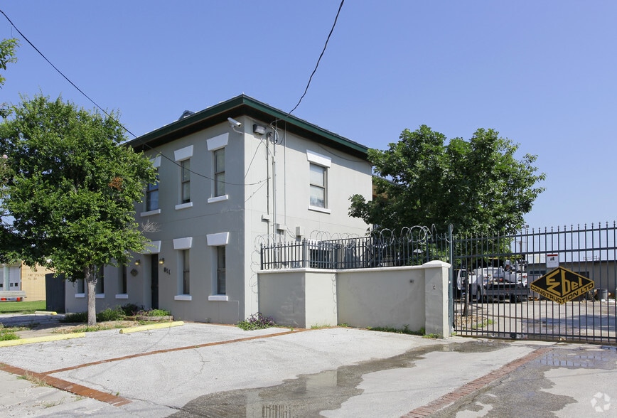 Cour avec hangar, entreposage et aire d'entreposage clôturée.