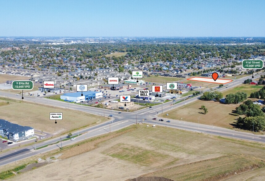 Land for sale near the intersection of 41st Street & S Ellis Road. Positioned near a growing commercial corridor that serves as a core shopping destination for nearby residents and Tea commuters. The site is surrounded by a growing mix of single and multi-family housing.