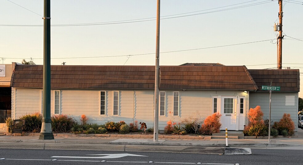 Constructed in 1971, the Property consists of a ±2,000 square foot, single-story, wood-frame office building situated on a ±6,098 square foot (0.14-acre) parcel. The efficient layout includes six private offices, one open main room, a sink and cabinet area, and separate men’s and women’s restrooms, making it well-suited for professional office, educational, or service-oriented uses. With nine (9) on-site parking spaces, including one ADA space, the Property offers convenient parking in a supply-constrained West Orange County corridor. Its standalone configuration provides identity, signage opportunity, and operational flexibility rarely found at this size point. Offered for sale at $1,999,999 or for lease at $2.00 NNN, 8111 Westminster Blvd represents a rare opportunity to secure a highly visible, freestanding commercial asset in an established infill locatio