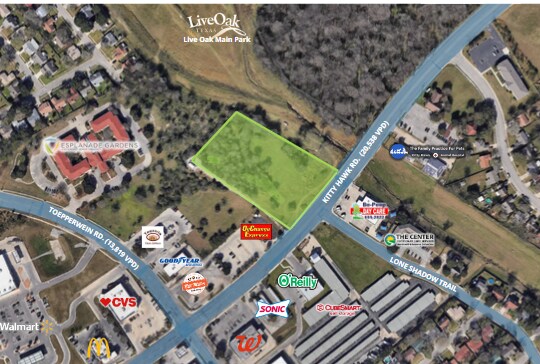Situé près de l'intersection de Kitty Hawk et du chemin Toepperwein, ce nouveau centre commercial aura un Drive Thru et un embouchage avec un espace patio