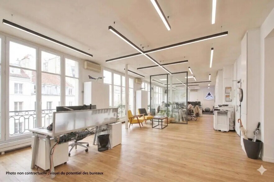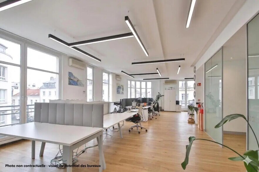Ces bureaux situés à l’étage intermédiaire de l’immeuble bénéficient d’une remarquable luminosité grâce à leur position en angle et à de grands ouvrants. L’aménagement combine des espaces ouverts et des zones cloisonnées, permettant d’accueillir différents modes de travail tout en conservant une circulation fluide. L’environnement intérieur est rehaussé par une belle hauteur sous plafond, très appréciée pour le confort qu’elle apporte et la sensation d’espace qu’elle crée. Les lieux sont dotés d’un câblage informatique en place, d’une climatisation et d’un chauffage individuel assurant une parfaite maîtrise du confort thermique. L’accès se fait via une double entrée palière, idéale pour organiser des flux ou segmenter les espaces en fonction des besoins opérationnels. Les utilisateurs bénéficieront également d’un local technique, d’un espace cuisine et d’archives en sous-sol, pratiques pour répondre aux exigences du quotidien. L’ensemble se trouve dans un très bon état général et constitue un environnement de travail fonctionnel et flexible, adapté à une grande diversité d’organisations.