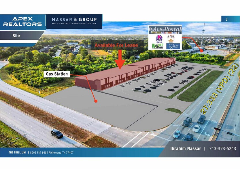Large parking area for tenants and visitors High end mixed use development Easy access to Grand Parkway 99 and Westpark Tollway Immediate access to FM 1464 Rapidly growing area with new residential communities delivering nearby