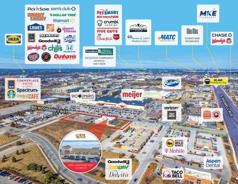 Located within the Milwaukee MSA (population exceeding 1.57 million), the subject property is strategically positioned near the intersection of S Howell Ave (30,400 VPD) and Forest Hill Ave and is only 12 miles from downtown Milwaukee. The 1.8-acre parcel comprises a 10,000 SF building, 5,000 SF outdoor play area, and 46 parking spaces. The subject property is within a quarter mile of Drexel Town Square, which comprises a vibrant mix of luxury apartments, diverse dining opportunities, and numerous retailers. The newly developed town square blends traditional main-street charm with contemporary urban amenities, including the new city hall and library complex. Nearby retailers include Target, Meijer, Pick n’ Save, ALDI, Kohl’s, T.J. Maxx, Planet Fitness, Chase Bank, McDonald’s, Chick-fil-A, Panera Bread, Starbucks, and more.