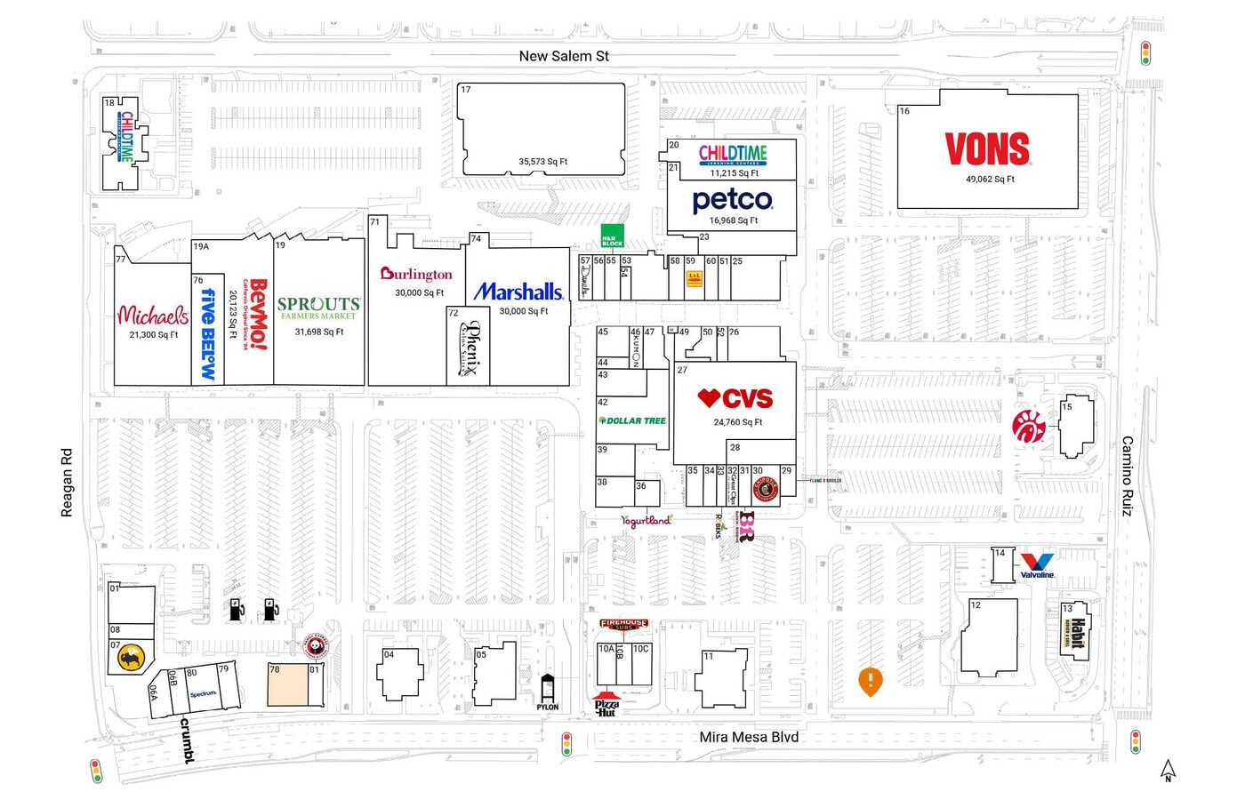 | Superficie commerciale brute | 76 826 pi² | Rues transversales | NWC Mira Mesa Blvd & Camino Ruiz |