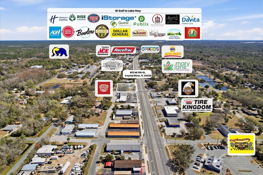 - It sits directly on a major high-traffic highway (Gulf to Lake Hwy) in the heart of Crystal River with 537ft of road frontage!