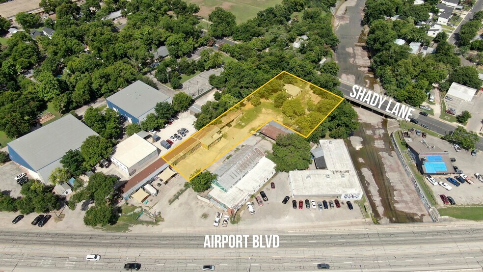 - Accès depuis Airport Blvd et Shady Ln.