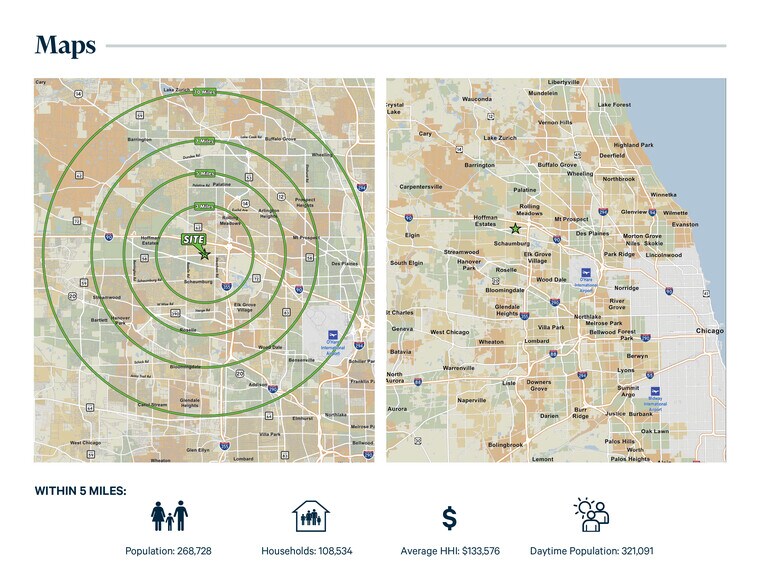 ESPACE D'ANCRAGE DISPONIBLE + 58 423 SF Divisible GRANDE VISIBILITÉ + À seulement 60 verges de la bordure du chemin Golf + 230 pieds de façade + 26 700 comptage du trafic VPD + Panneaux de pylône SUPER MARCHÉ RÉGIONAL + Moins de 1 mile du centre commercial Woodfield + Plus de 5 millions de FS de détail dans le corridor + Près d'Ikea et de nombreux autres magasins de meubles FORTE DÉMOGRAPHIE + 274 208 personnes dans un rayon de 5 miles + revenu moyen du ménage de 130 684$