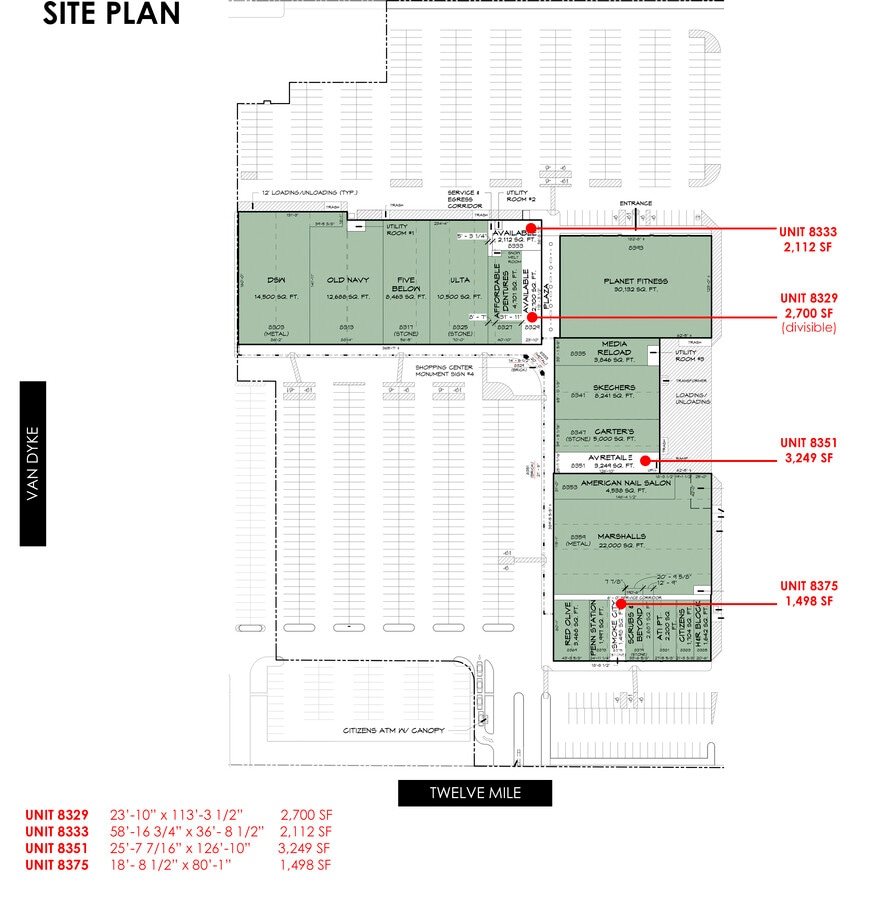 - Predominant visibility is assured, with a high traffic count of 43,285 vehicles per day crossing the intersection of Van Dyke Avenue and 12 Mile Road.
