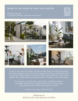 8335 Sunset 8335 W Sunset Blvd 155–2 441 pi² d'espace disponible • Bureau • West Hollywood, CA 90069