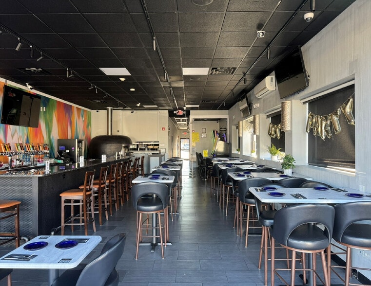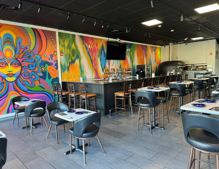 The interior is fully built out with modern kitchen and bar equipment, and updated decor complete with custom murals. All FF&E is included in the sale.
