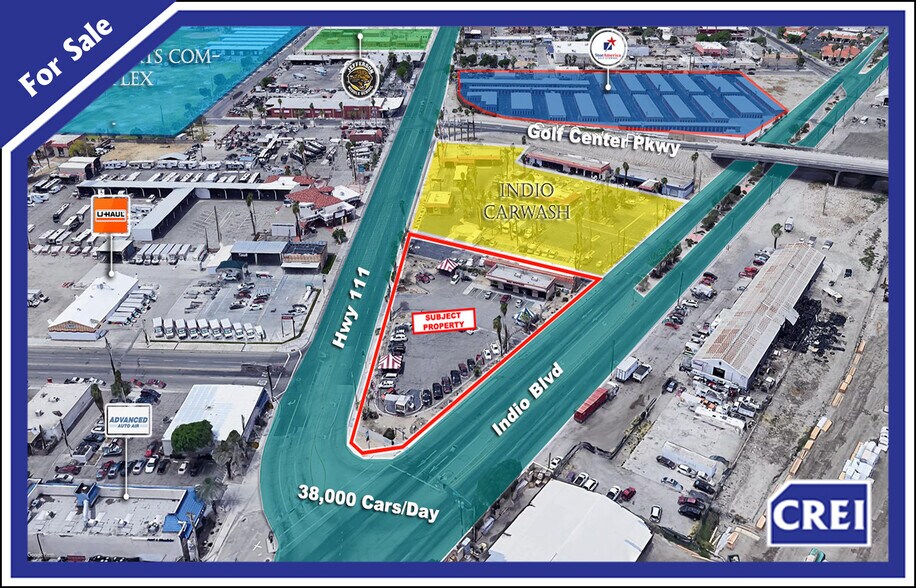 SOMMAIRE DE L'OFFRE : La 83500 Hwy 111 à India, en Californie, offre à un investisseur l'option soit d'un immeuble de réparation automobile existant, soit d'aménager un emplacement de 18 voitures à double empilage d'env. 1 500 à 2 000 pi3 et un pavé de vente au détail d'environ 4 000 pi3/s. La propriété offre une excellente visibilité avec plus de 421 pieds de façade, au coin signalisé de la route 111 et du boulevard Indico, avec plus de 38 000 voitures par jour au coin.