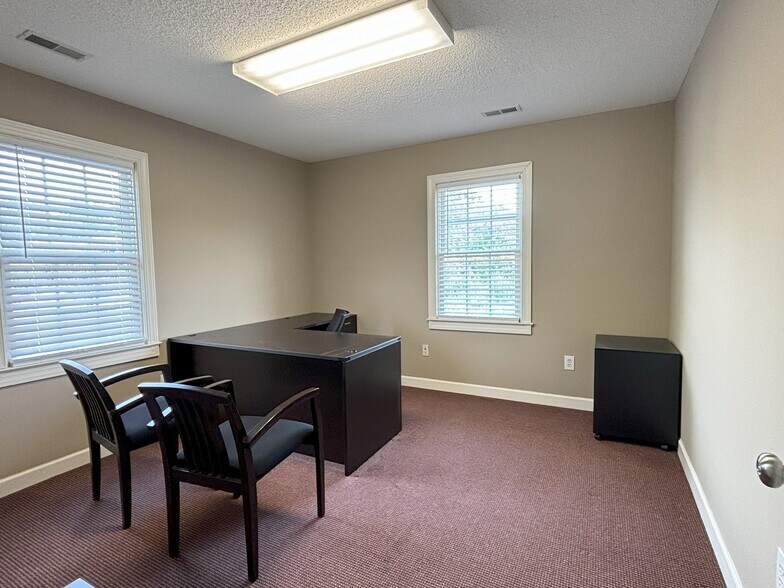 • Pièce B : ±2 100 pieds pieds pieds pieds • La suite est située au deuxième étage • 6 bureaux spacieux • 1 bureau exécutif avec salle de conférence attenante • Salle de bain privée • Kitchenette/salle de réunion • Hall d'entrée commun situé au premier étage • Signalisation avant de la route le long du chemin Powdersville et signalisation sur l'immeuble • Zone commerciale générale dans la ville d'Easley • Taux de location : 16,00 $/NNN SF