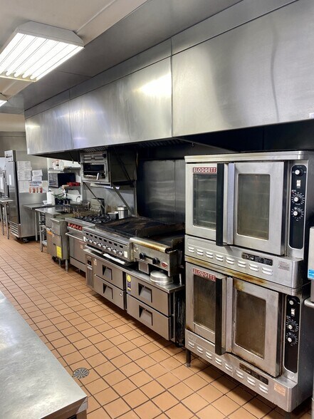 Very large full commercial kitchen with excess amounts of storage