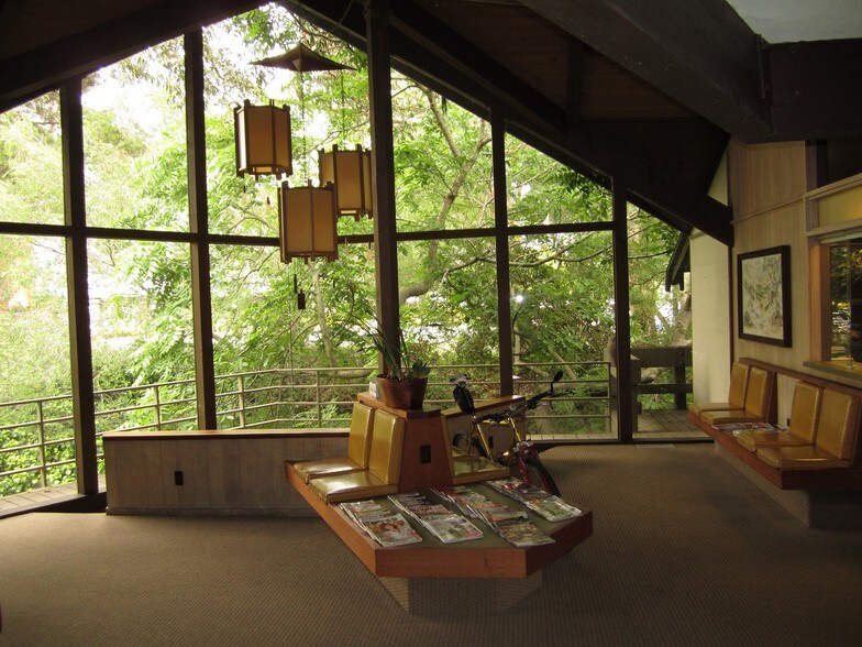 Why have your patients wait in a boring waiting room when they could enjoy the unique architecture and unusual views of Brizzolara Creek from the lobby of this Warren Leopold designed building?