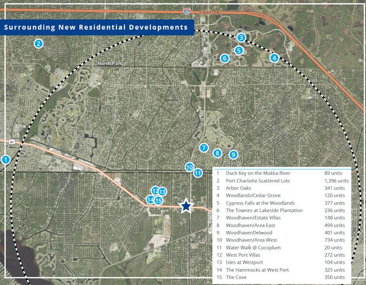 Port Charlotte Town Center, qui est le principal carrefour commercial de Port Charlotte. Plus de 5 000 unités sont en cours d'élaboration dans les environs immédiats de cette propriété.
