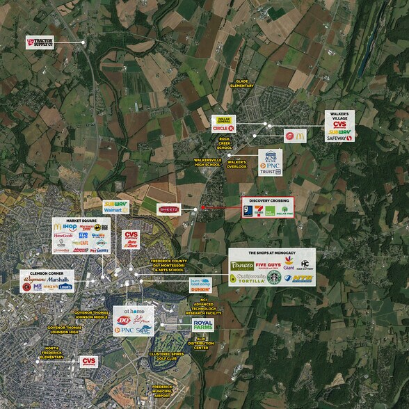 Discovery Crossing est un centre commercial de quartier de 63 291 SF avec un espace d'ancrage junior de 14 512 pieds carré disponible. Le centre est idéalement situé sur Woodsboro Pike et bénéficie d'une exposition à plus de 21 000 voitures par jour. Discovery Crossing se trouve à une intersection signalisée directement en face de Sheetz. Le centre abrite des détaillants nationaux tels que Dollar Tree, Goodwill et H&R Block. Discovery Crossing bénéficie d'une forte démographie, avec un revenu moyen des ménages de 118 579$ dans un rayon de 3 milles.