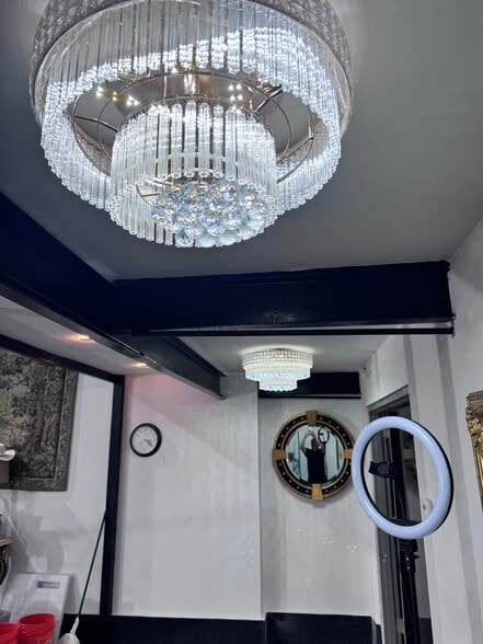 1,650 sf of floor space to include two upstairs offices which are divided, and a Mezzanine which overlooks the main floor. New recessed halo lighting, three 27 inch chandeliers with crystals (can change three-colors with the light switch). New 6,000 lumen black-round overhead LED lights for lighting the entire Suite. New black and white paint color scheme both upstairs and down. The suite was painted and the lights were added in February 2025. Two entrances via double 3-hour rated hollow metal doors. The entire building has its Certificate of Occupancy with the City, and was completely renovated in 2021. 26 foot ceilings and exhaust fans in the ceiling to expel heat. Call me for a showing!