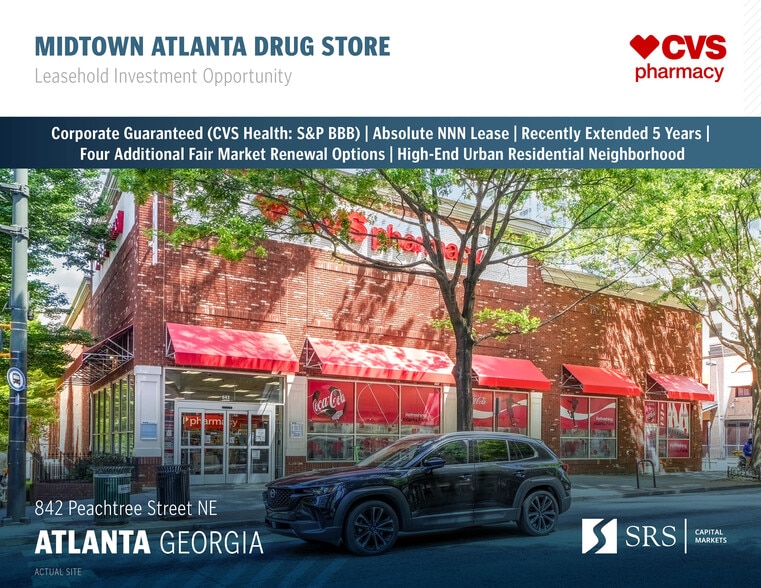 SRS National Net Lease is pleased to offer the opportunity to acquire the leasehold interest (building ownership) in an absolute NNN leased CVS investment property located in Midtown Atlanta, Georgia. The tenant, CVS Health, Inc. (S&P: BBB), has recently extended its lease through October 2031 on both the building and the underlying ground lease, demonstrating its commitment to the site and long-term confidence in this premier urban location. The lease features four remaining 5-year renewal options at fair market rent, providing long-term income durability and future leasing flexibility. CVS is responsible for CAM, taxes, insurance, maintenance, and all ground lease obligations, offering zero landlord responsibilities and making this an ideal passive investment opportunity for a wide range of investors. In addition, the leasehold ownership structure offers the benefit of depreciating 100% of the asset basis, creating an added tax advantage.