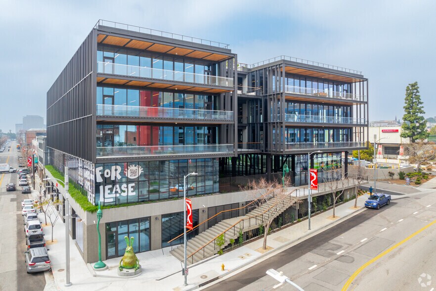Découvrez comment cet ancien centre de vente au détail a été transformé de manière durable en une merveille moderne unique en son genre qui respire la créativité pour susciter l'inspiration avec l'un des espaces de bureaux de classe A au 843 N Spring Street. Le projet de 122 380 pieds carrés a été achevé en 2023 et s'étend sur cinq étages plus un niveau de stationnement. Les fenêtres du sol au plafond qui enveloppent la propriété permettent à la lumière naturelle d'éclairer des matériaux de construction de haute qualité tels que le bois stratifié croisé, les poutres en acier poli et les panneaux de béton personnalisés conçus et construits par des firmes renommées. Le 843 N Spring Street a été construit avec une esthétique créative à l'esprit, en commençant par l'installation artistique personnalisée « Be Hare Now », créée par les frères Haas, jusqu'à la menuiserie de luxe et aux patios paysagers au milieu de la du troisième au cinquième étage. La durabilité a également été un facteur clé dans la conception, avec des panneaux solaires sur le toit et un système novateur de récupération des eaux de pluie. Le premier étage comprend la section commerçante au niveau de la rue et le hall avec quelques places de stationnement, et le deuxième étage comprend un restaurant avec des sièges extérieurs, des bureaux avec une mezzanine et une cour luxuriante. Les autres étages ont des balcons privés qui donnent sur le paysage urbain et des patios intérieurs qui divisent les deux côtés le long de la cage d'escalier et du moyeu de l'ascenseur. Le Crowning 843 N Spring Street est le toit-terrasse panoramique. Il offrira une expérience surélevée qui distinguera le bâtiment et offrira une vue imprenable sur le centre-ville de Los Angeles, la rivière Los Angeles et les montagnes majestueuses. Situé dans le quartier chinois, le riche carrefour culturel offrira aux locataires des centaines de destinations pour manger, boire, regarder et écouter. Dodger Stadium, Homage Brewing, Eastern Projects Art Gallery et Melody Lounge ne sont que quelques-uns des innombrables endroits à explorer à moins d'un kilomètre de la propriété. Se rendre au 843 N Spring Street et à d'autres points chauds sera un jeu d'enfant, la station Chinatown située à proximité offrant un accès à divers modes de transport, y compris les autobus, les trains et la ligne A du métro.