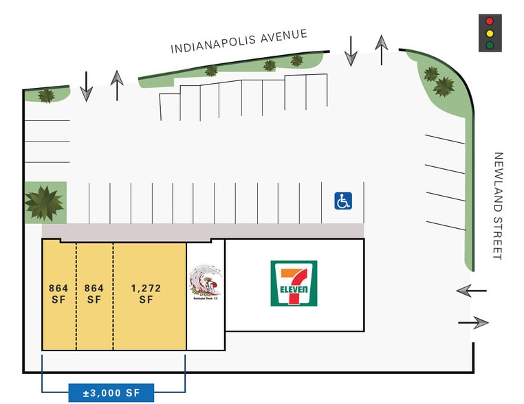 8462-8472 Indianapolis Ave 864–3 000 pi² d'espace disponible • Commerce de détail • Huntington Beach, CA 92646