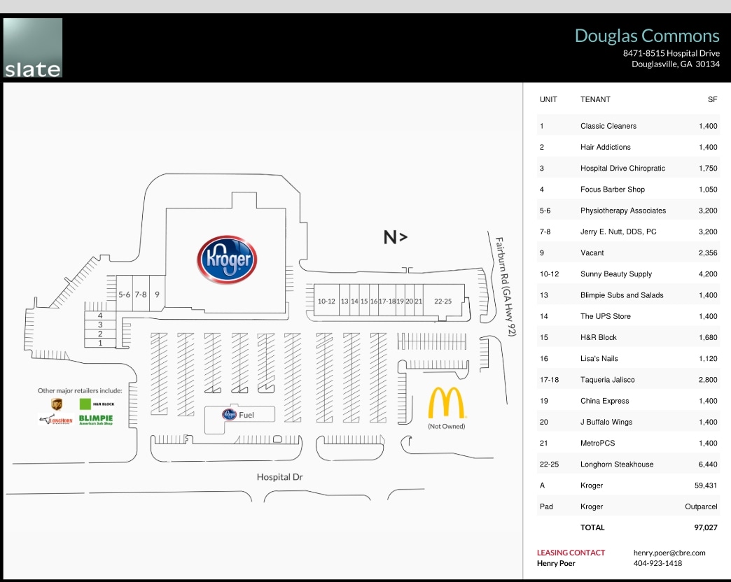 Douglas Commons 8471-8515 Hospital Dr 1 pi² d'espace disponible • Commerce de détail • Douglasville, GA 30134