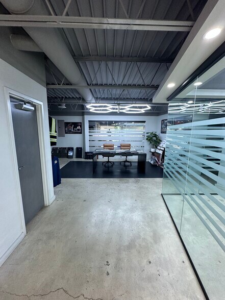 Newly built out office with glass doors and polished concrete floors.