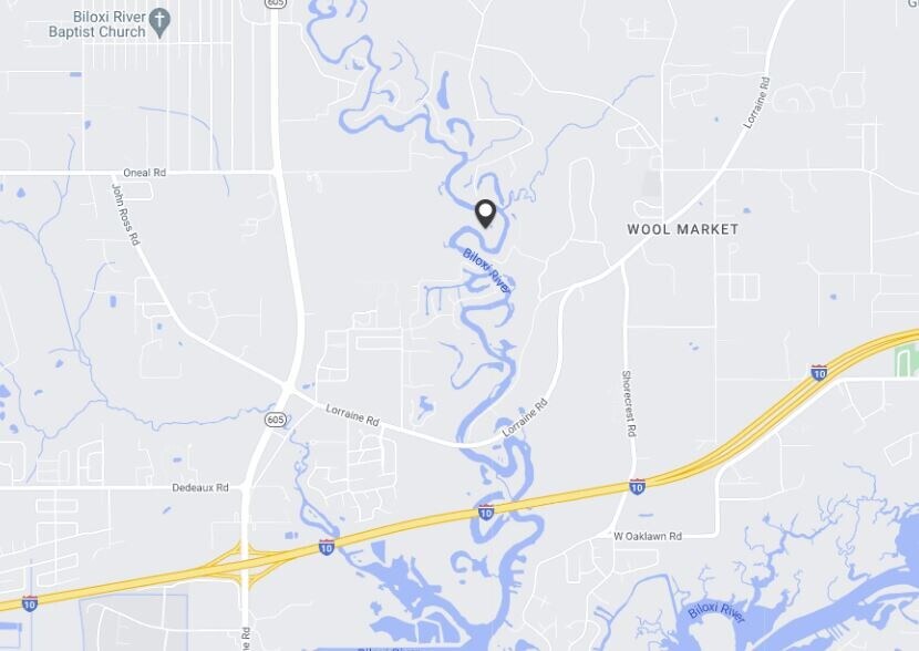 Façade de la RIVIÈRE BILOXI sur une péninsule située juste au nord de Retreat Village, en face de la boutique Prop (daiquiri) et d'autres propriétés du camp de poissons. La propriété dispose également d'une longue plage de sable et d'un lac. Le propriétaire n'a connaissance d'aucun accès routier.
