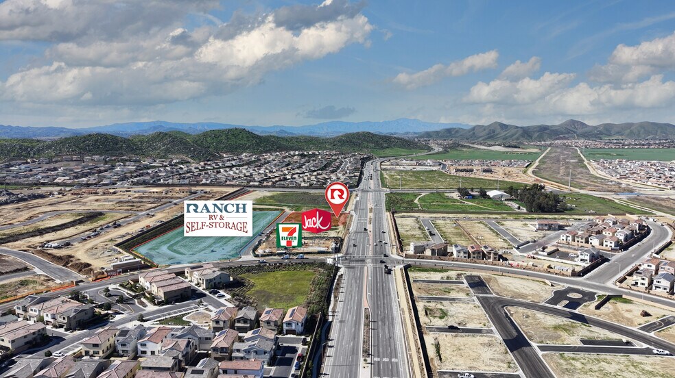 Disponible à la vente ou location de terrain envisagée. Terrain de 1,68 acres approuvé pour deux bâtiments commerciaux multi-locataires sur une seule parcelle. Le développement commercial adjacent est actuellement en cours et progresse rapidement. La propriété bénéficie d'une visibilité optimale depuis le Domenigoni Parkway, récemment élargi en une artère à 6 voies accueillant plus de 35 000 véhicules par jour. Travaux hors site à compléter, services publics raccordés au site. Contactez-nous dès aujourd'hui avant que cette opportunité ne disparaisse !