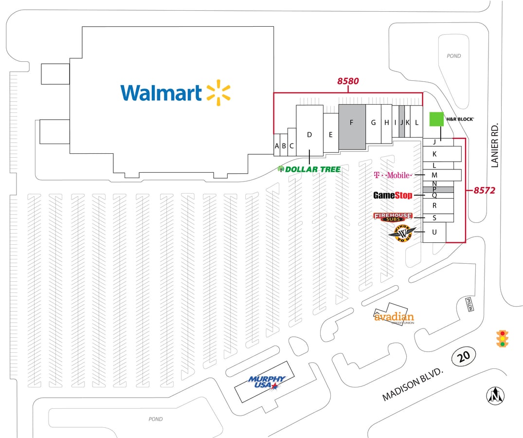 | Magasins | 19 | Rues transversales | Madison Blvd & Lanier Rd |