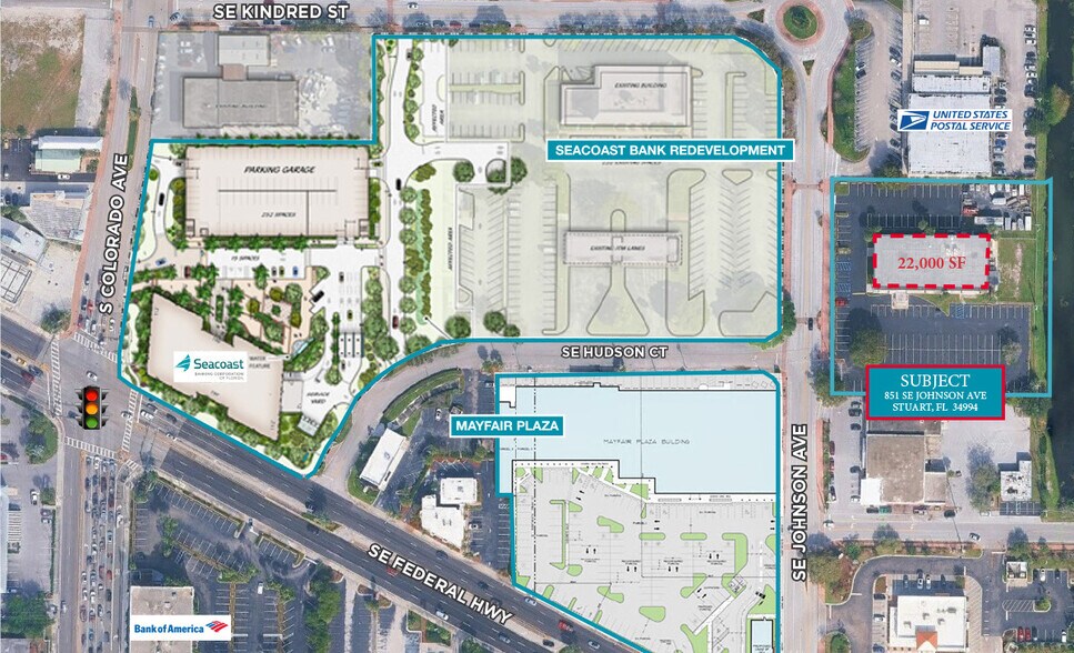 • FRONTAGE Johnson Ave frontage • LEASE TYPE Direct • POSSESSION TBD on Buildout • ASKING RENT $24.00/SF NNN • NEIGHBORS USPS, Seacoast Bank, Wawa, TD Bank, and National Retailers • Downtown Stuart location • Seacoast Bank redevelopment project across the street • Lots of on-site and street parking available • Close to all amenities in the area • Newly remodeled and refurbished space coming to Downtown Stuart