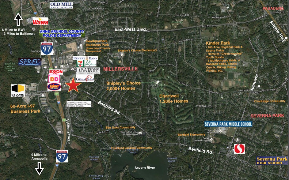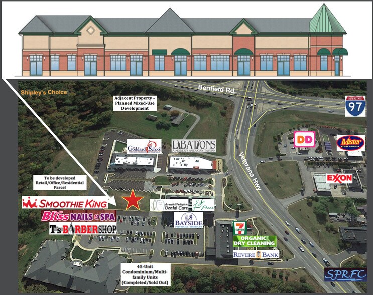 12 acre mixed use project including 5 Commercial / Retail buildings and residential. Located at intersection of Benfield Road and Veterans Hwy in Millersville at the Gateway to Severna Park.