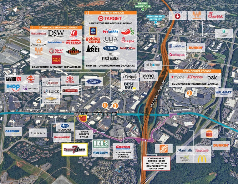 - BARRETT PARKWAY (53,100+ VPD) – PREMIER RETAIL CORRIDOR IN ATLANTA GA BETWEEN I-75 (152,000+ VPD) AND COBB PARKWAY (39,100+ VPD)